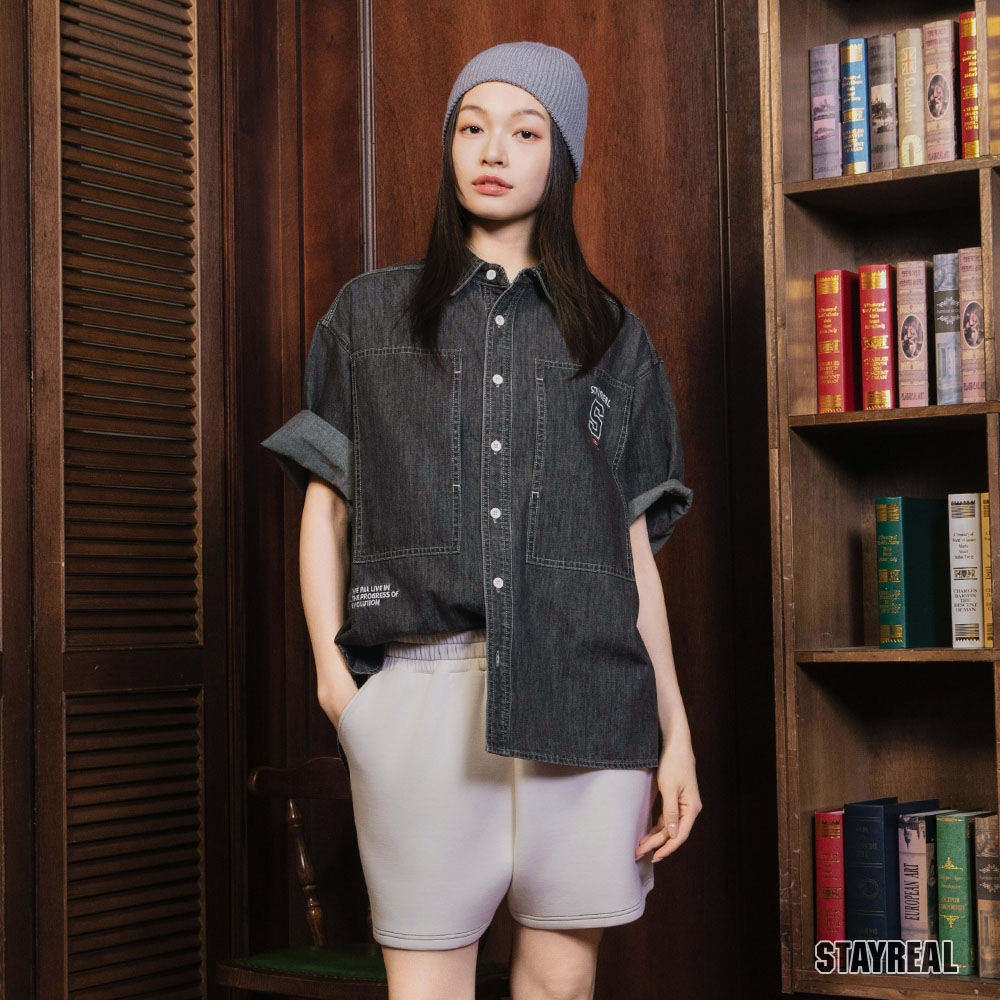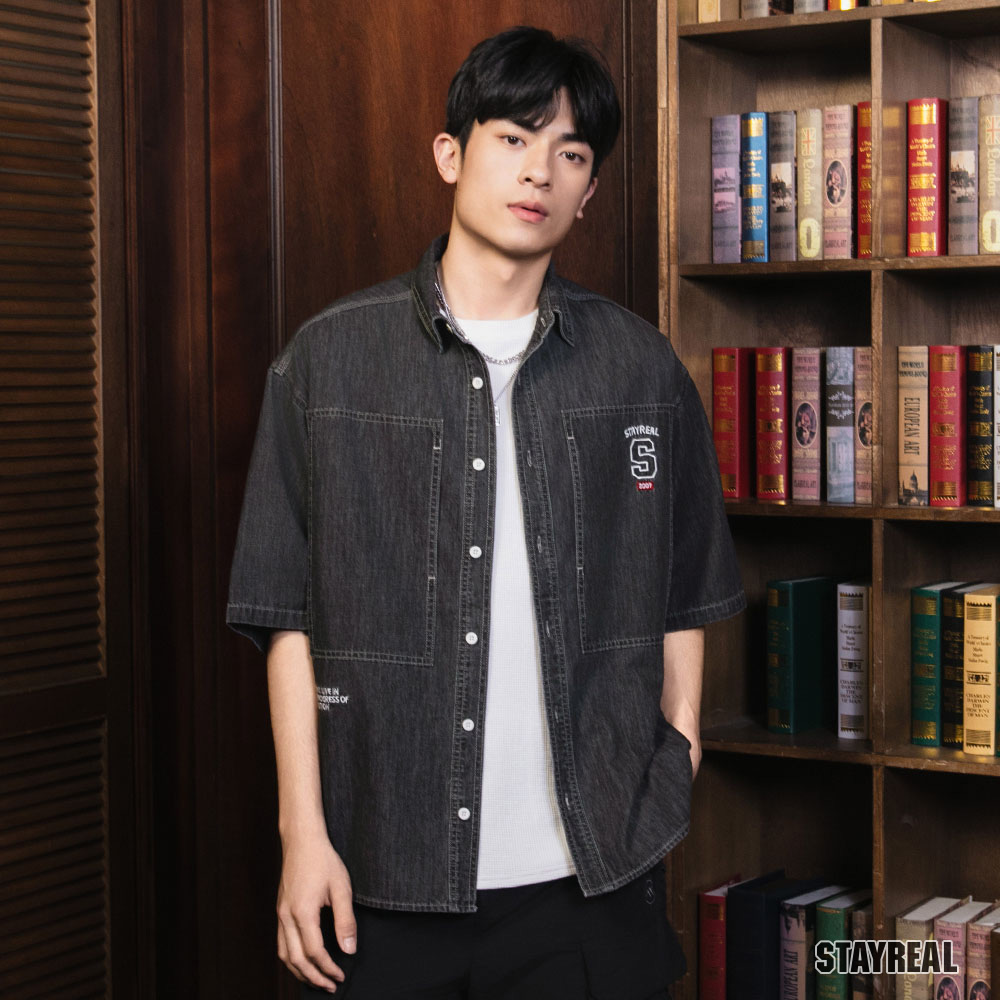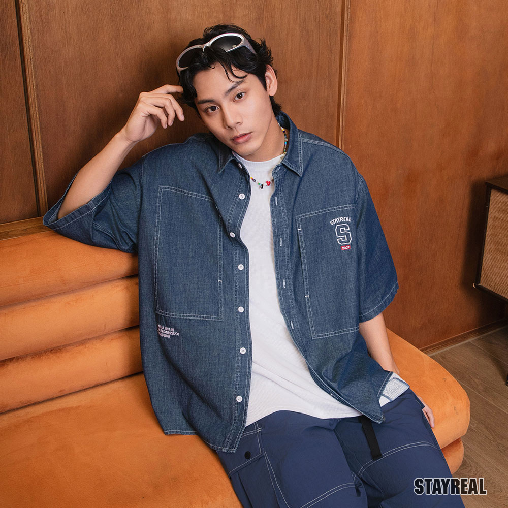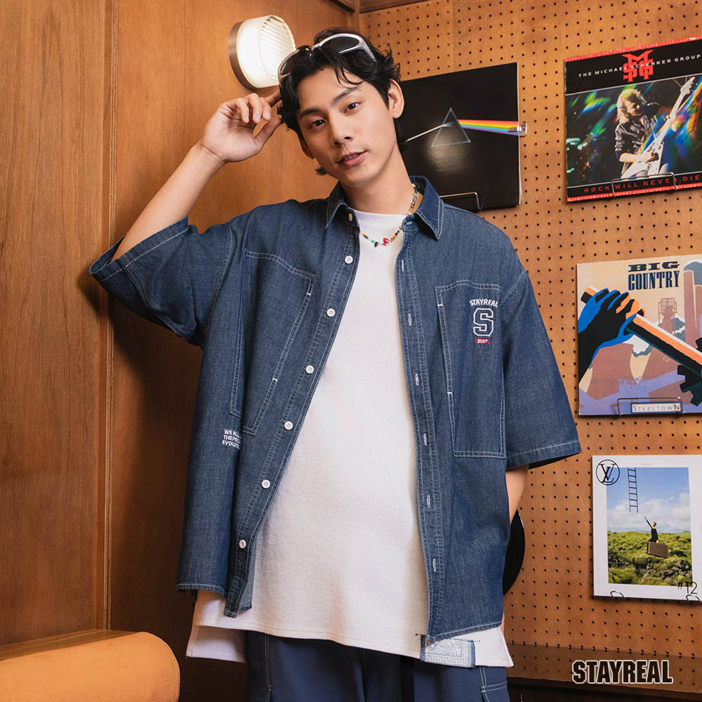 整件撞色壓線設計/SR專屬刻字鈕扣及胸前兩個獨特側開口大口袋,輕鬆展現舒適且個性的美式復古風格