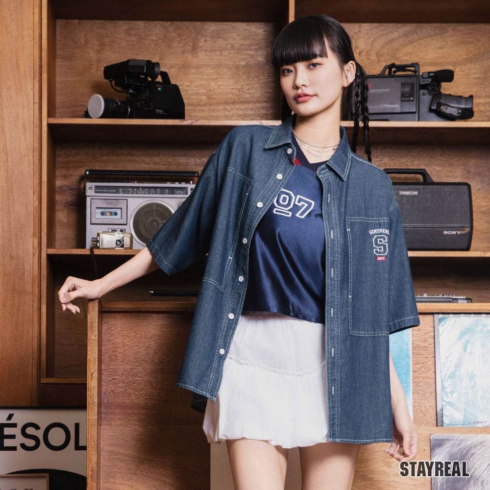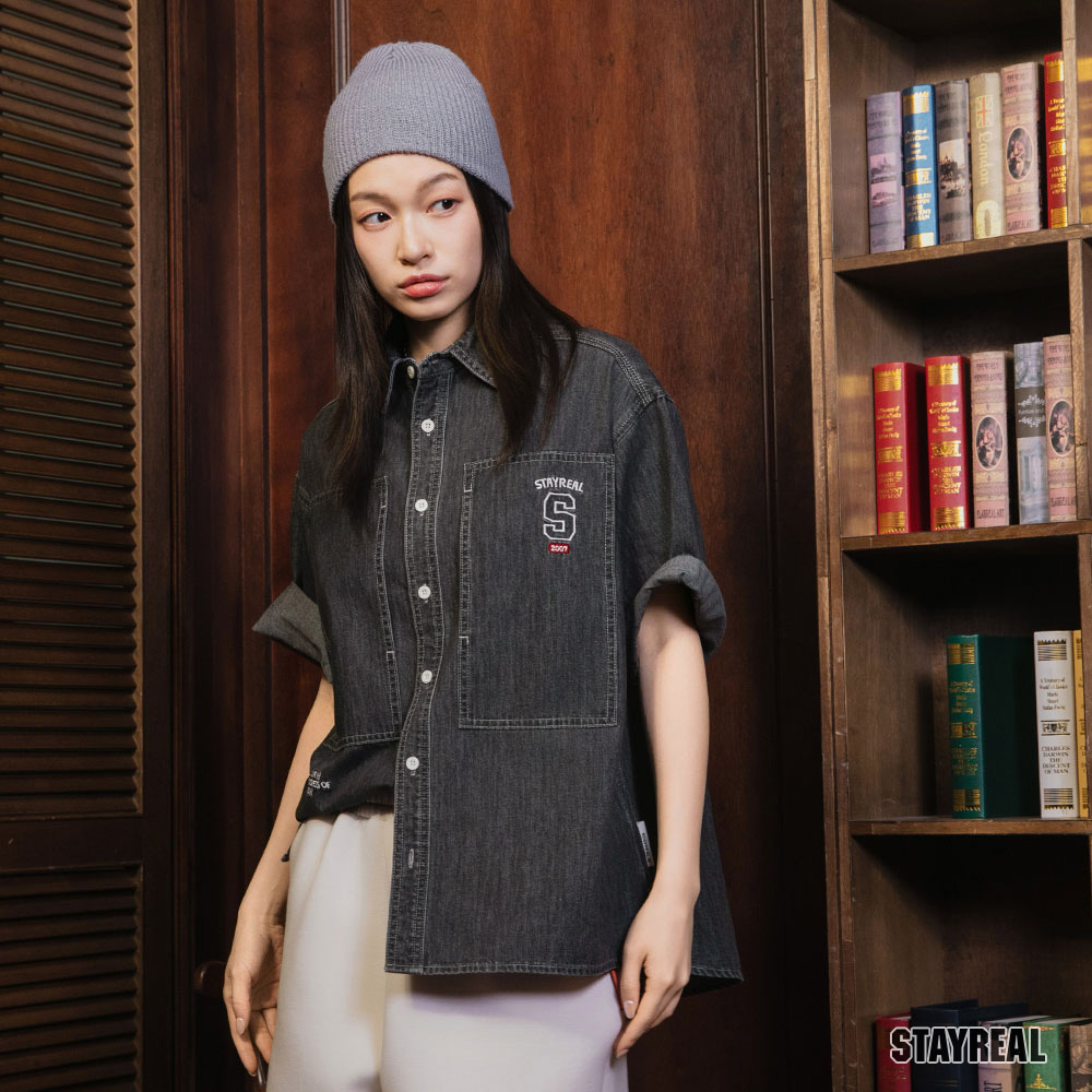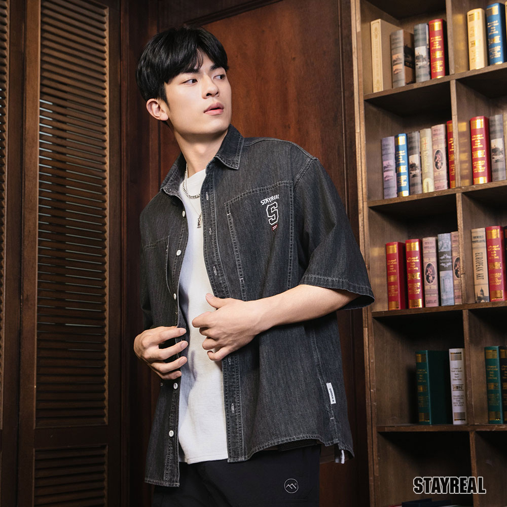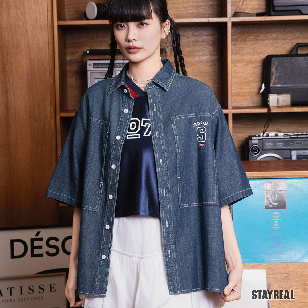 整件撞色壓線設計/SR專屬刻字鈕扣及胸前兩個獨特側開口大口袋,輕鬆展現舒適且個性的美式復古風格