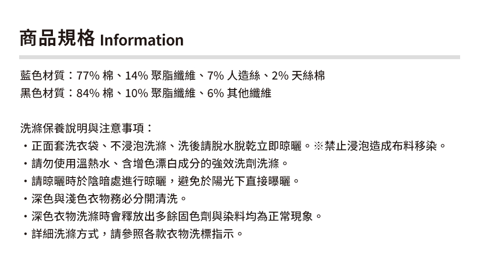兩色成份略有差異,成衣水洗,面料柔軟親膚透氣性佳