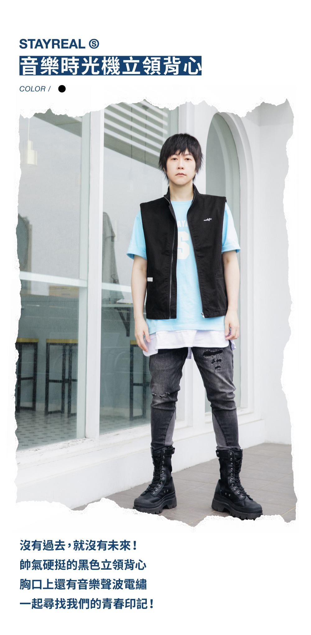 立領設計,門襟搭配YKK拉鍊,口袋處剪接設計,讓視覺更豐富