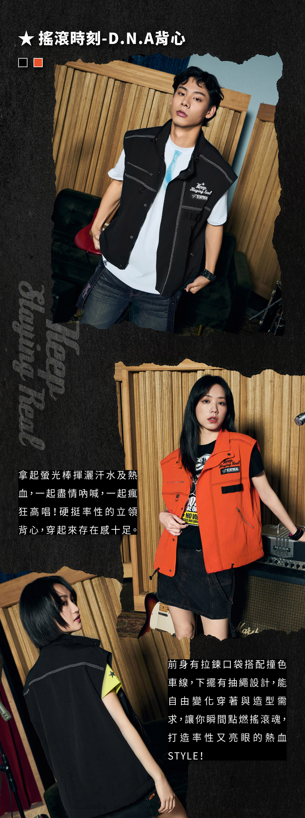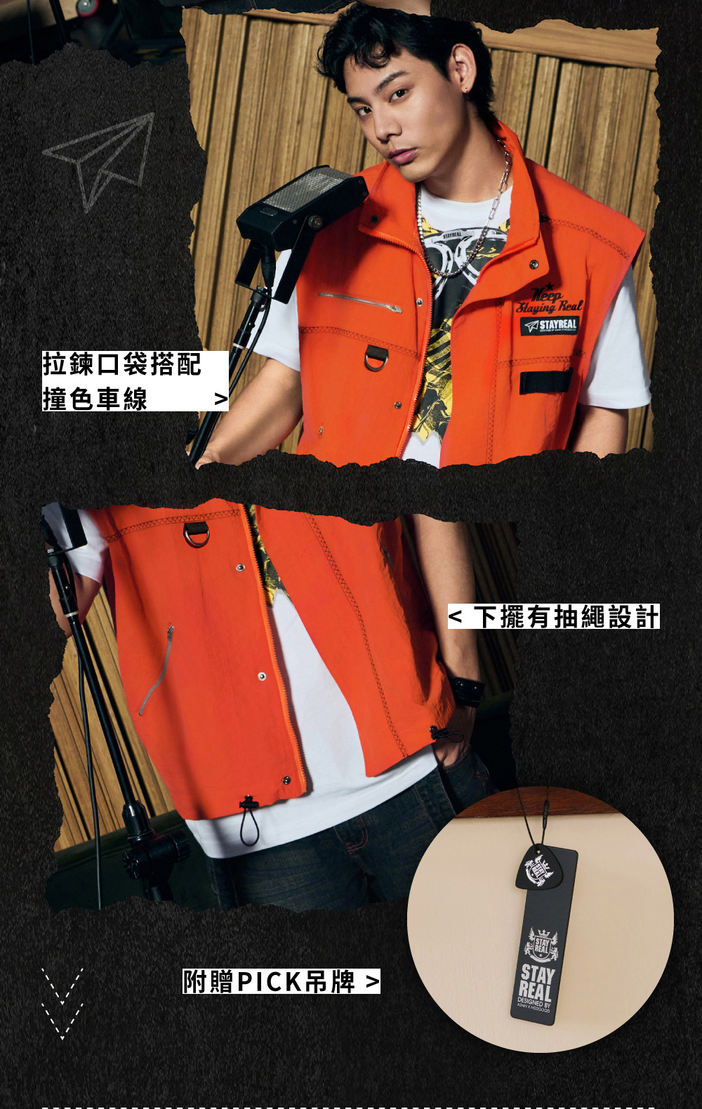 前身配置拉鍊口袋讓日常穿著使用更方便,搭配撞色線讓外觀更有設計感