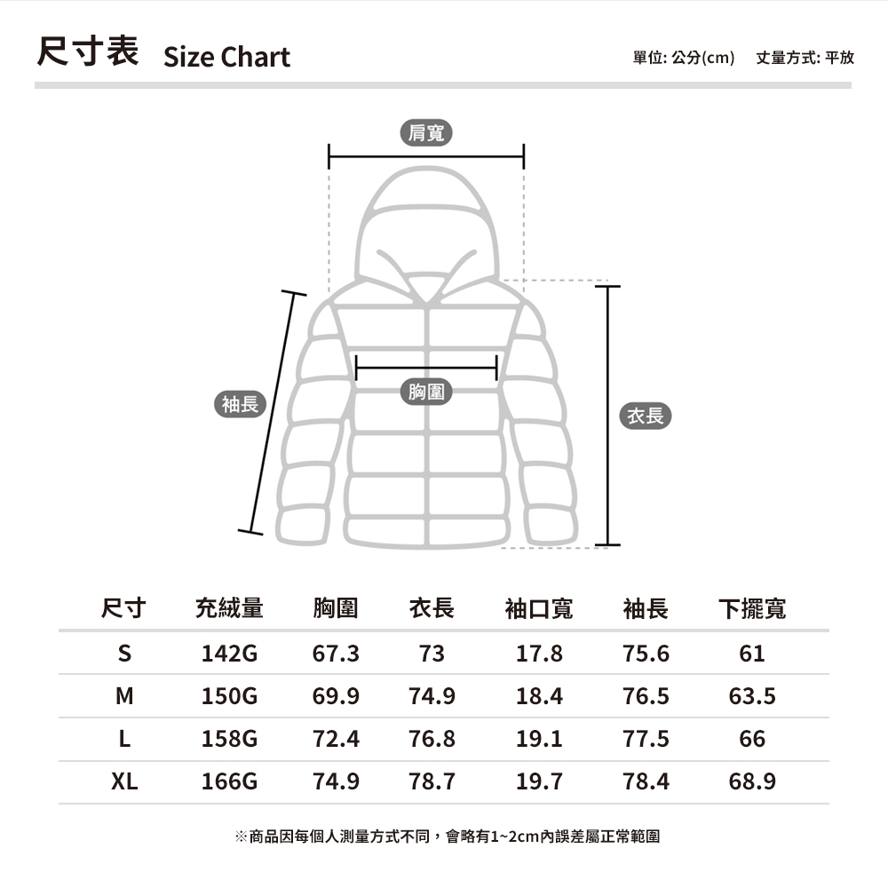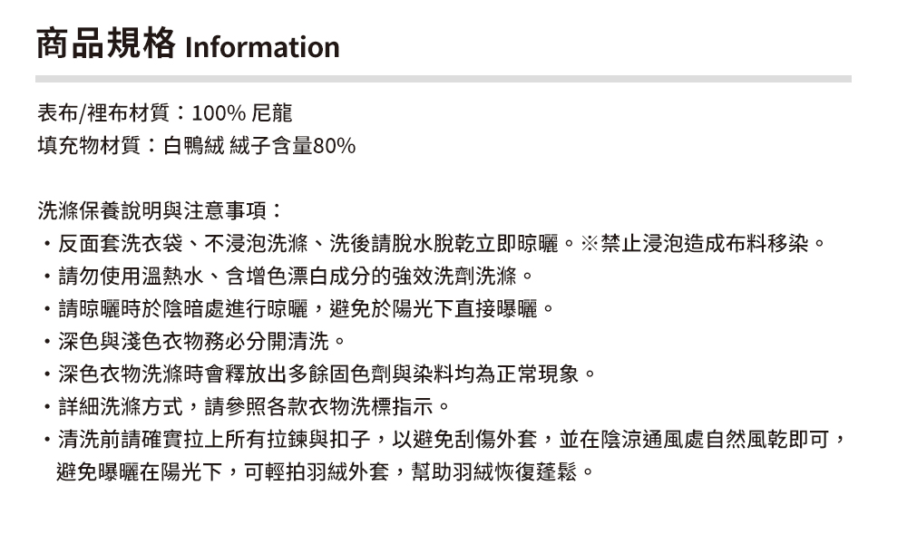 面料手感輕柔,具有輕微防潑水功能,嫩曾填充物為白鴨絨,保暖效果佳
