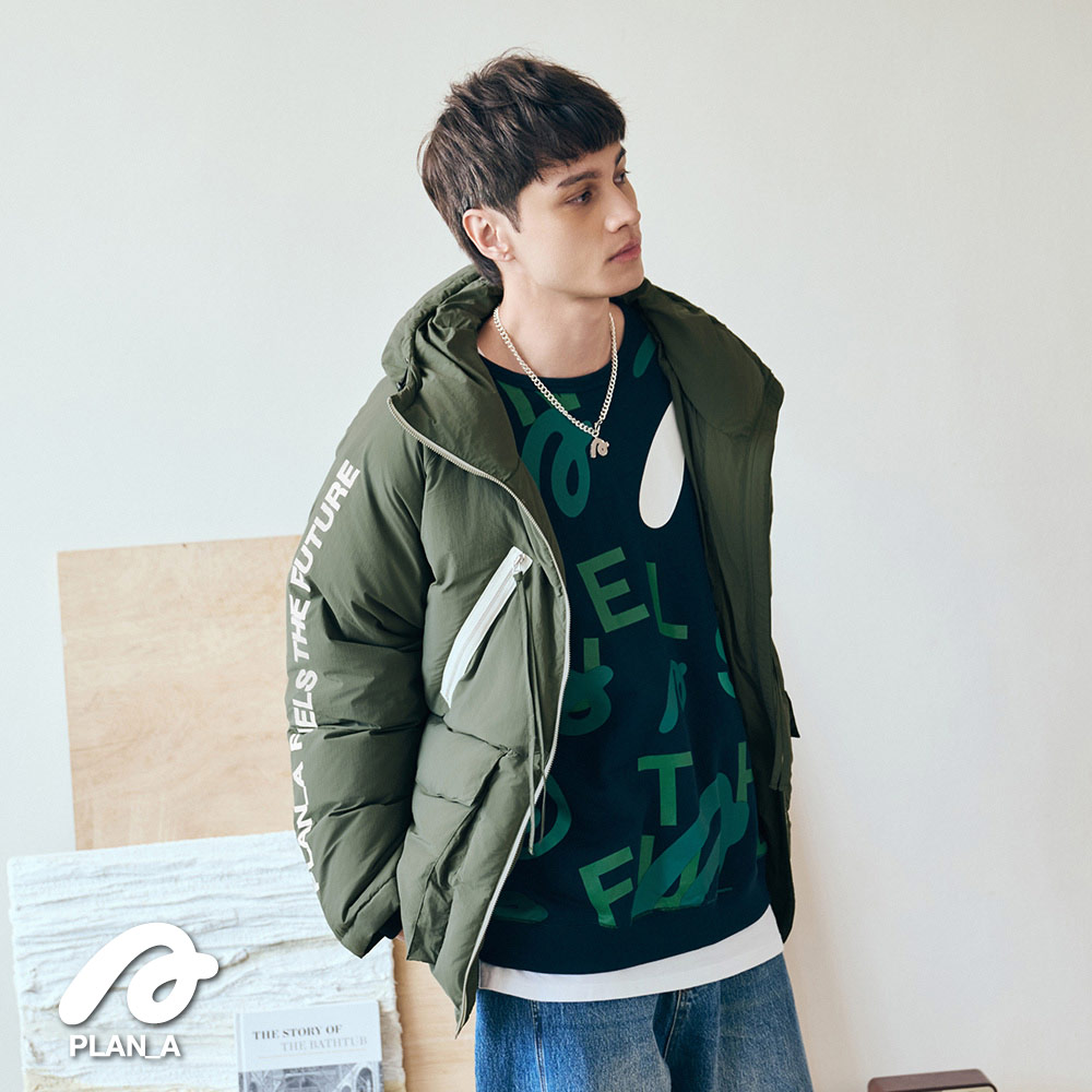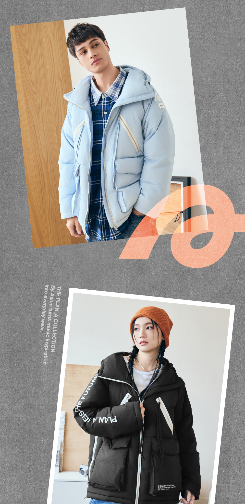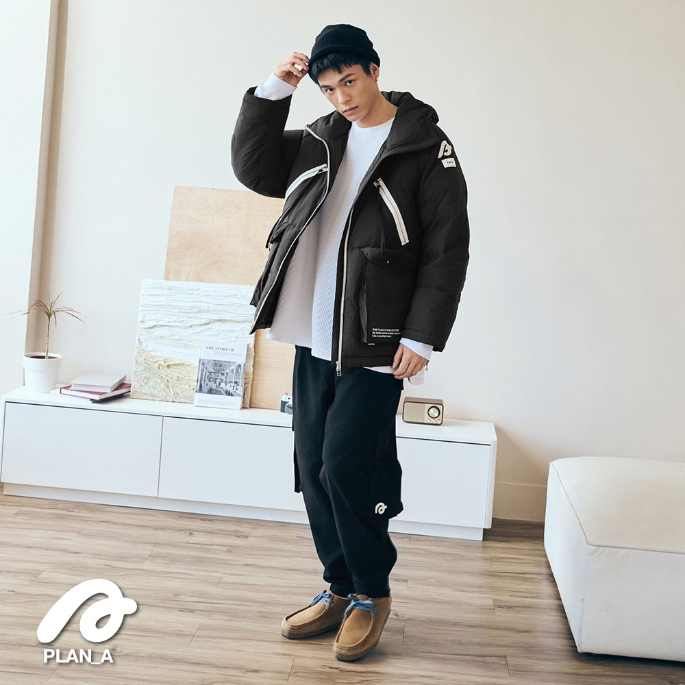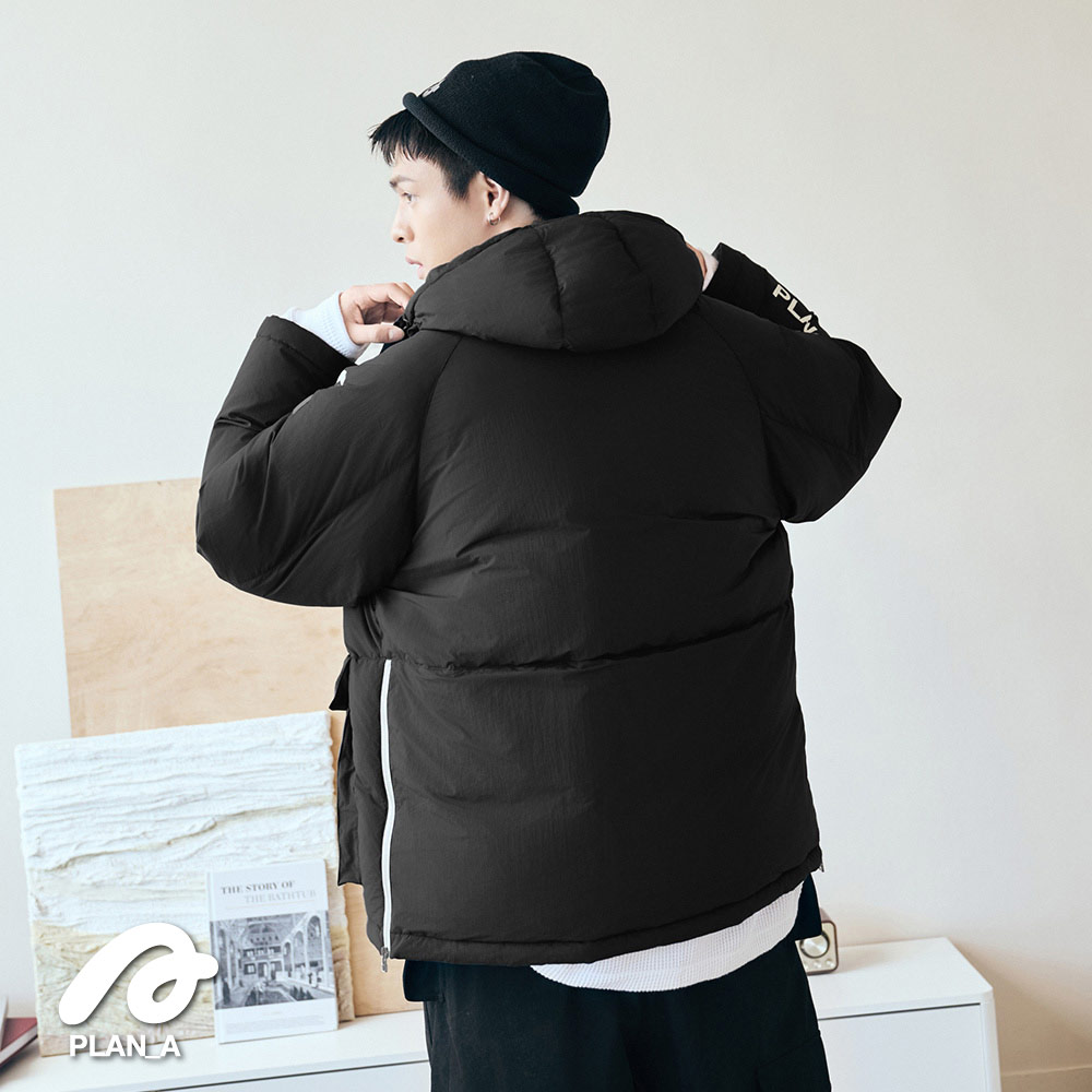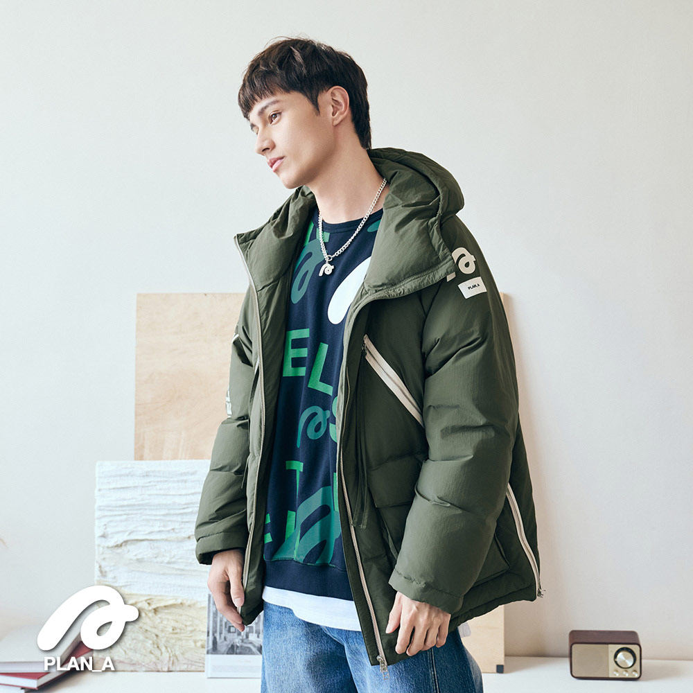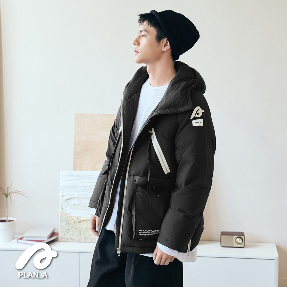 正面兩個拉鍊袋與兩個袋蓋式插口袋,增加實用與安全性,內口袋可放置重要物品,帽沿處配置彈性繩與調節釦,增添保暖性與抗風性,門襟與兩側脇邊採用撞色拉鍊設計,讓整體設計更活潑