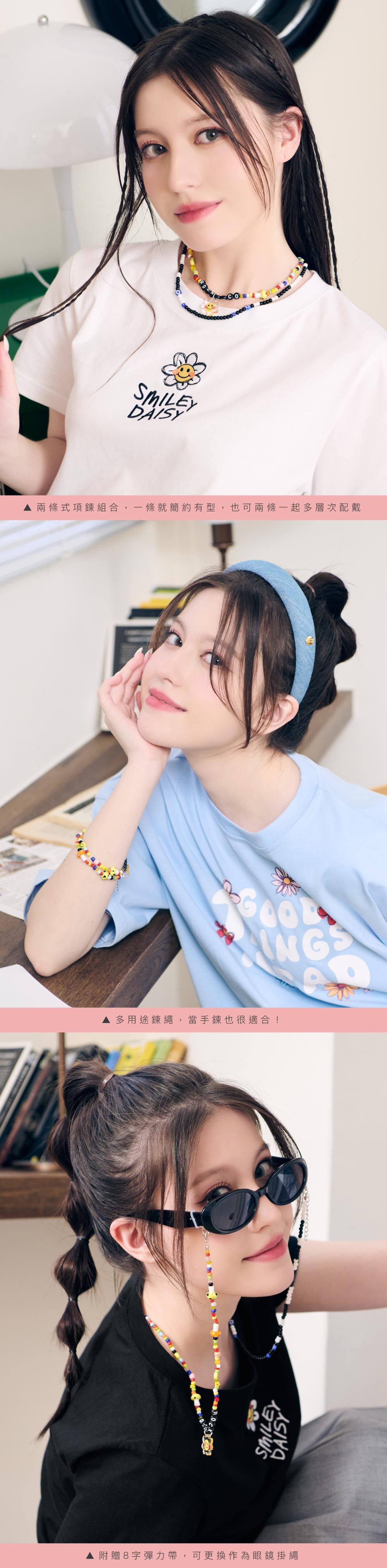 兩條式項鍊組合,一條就簡約有型,也可兩條一起多層次配戴,彩色款繽紛有活力、黑白款簡約低調有質感,附贈8字彈力帶,可更換作為眼鏡掛繩,還可以繞在手上當手環!這麼多搭配方式,一定要來一組試試看!