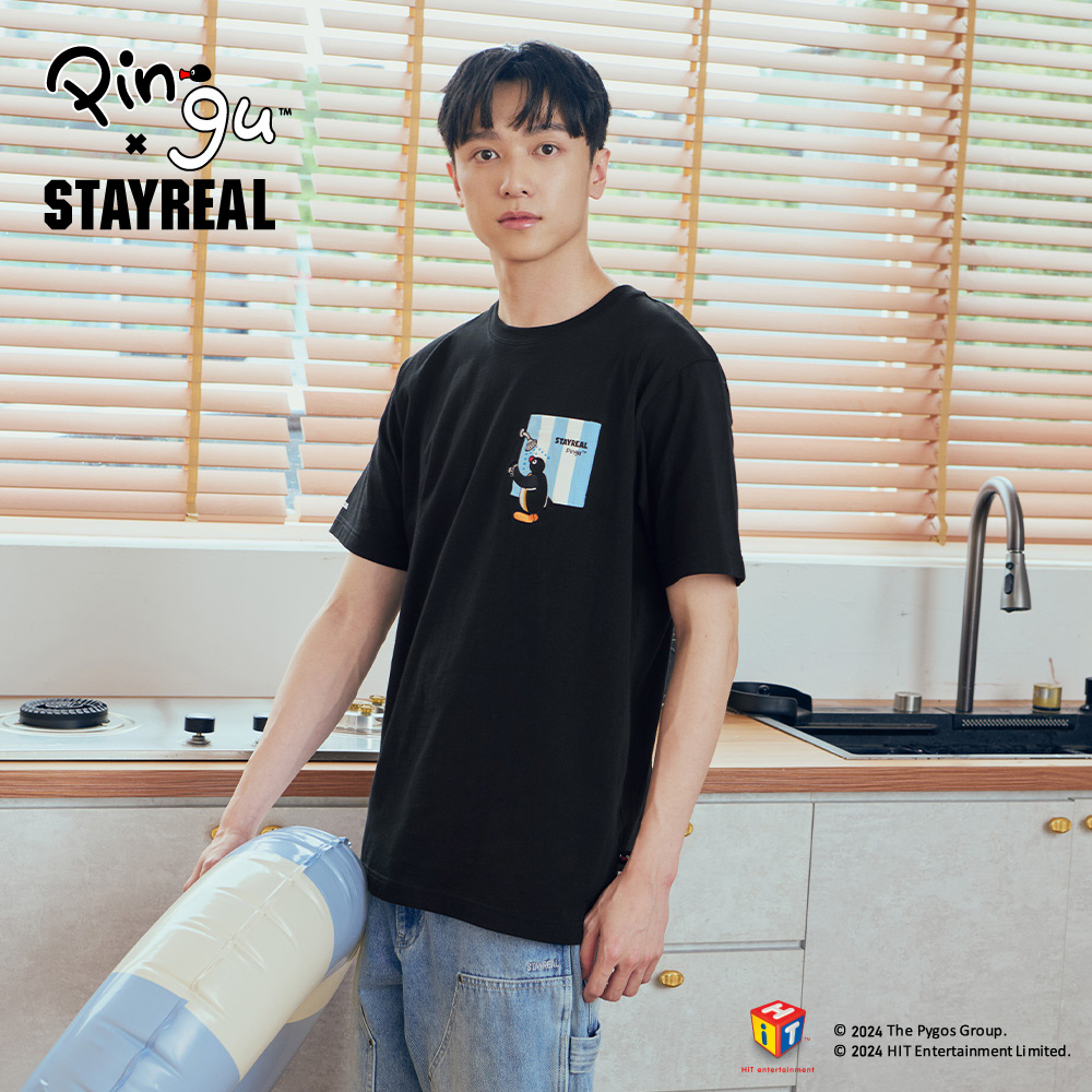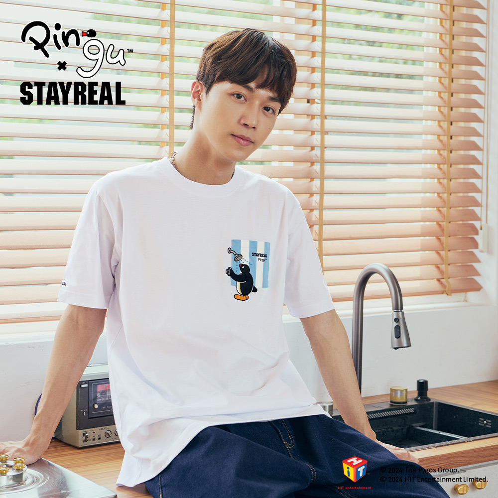 STAYREAL x 企鵝家族 Pingu 洗香香口袋T - 白