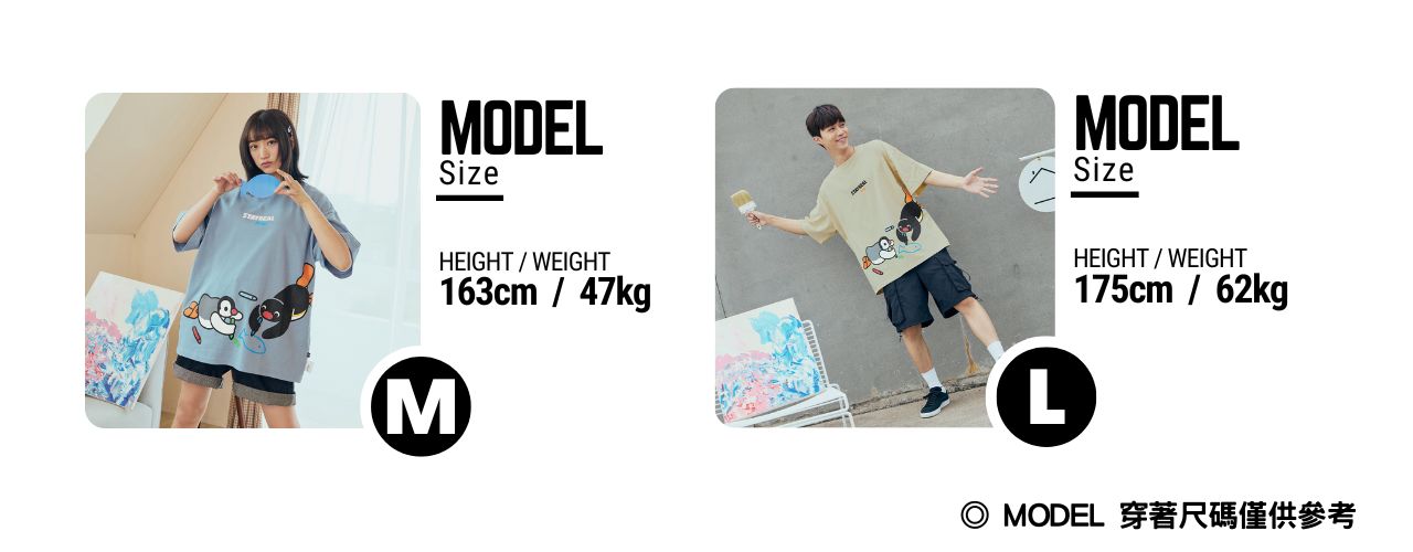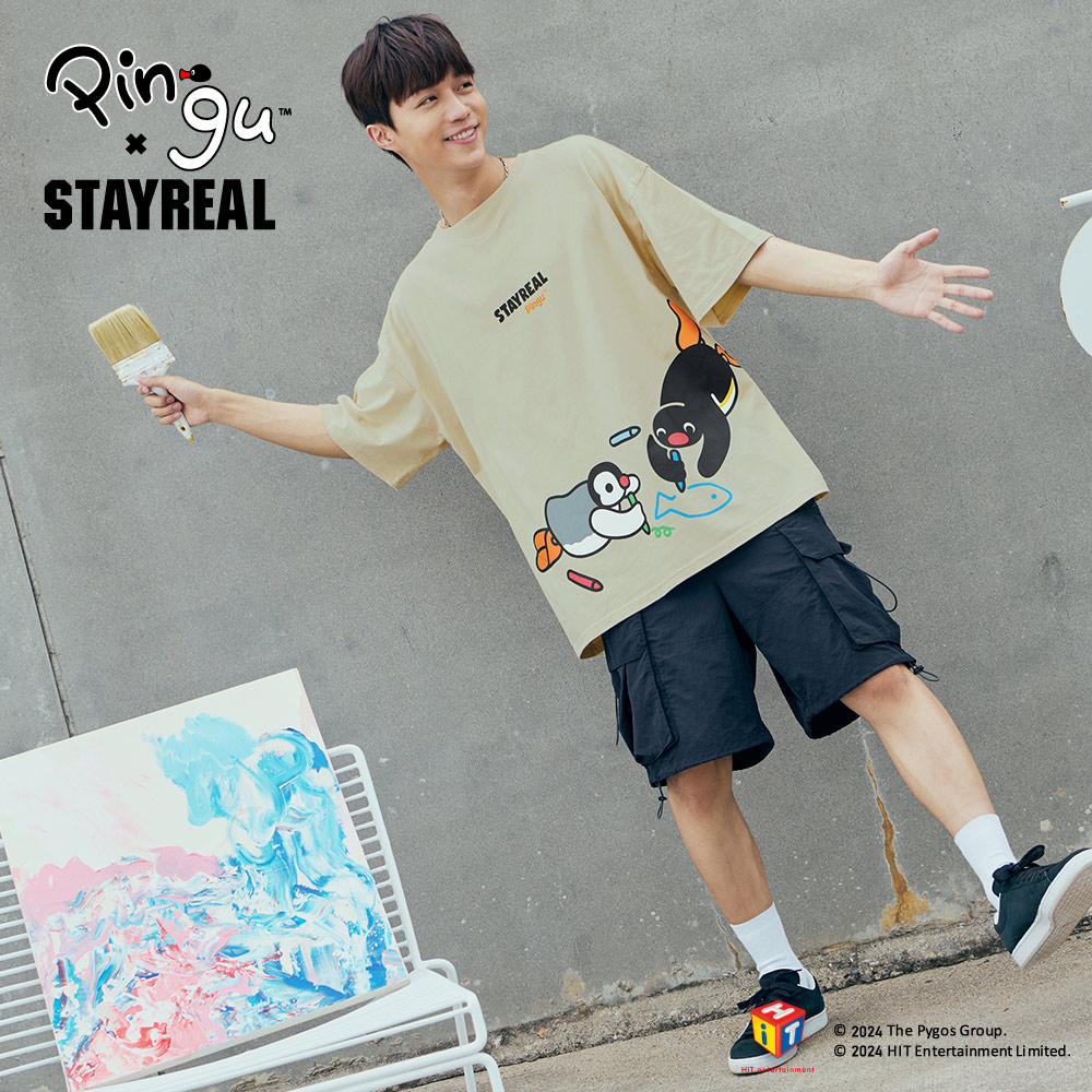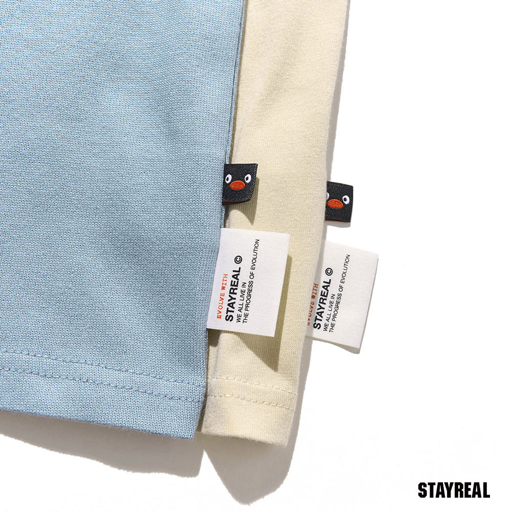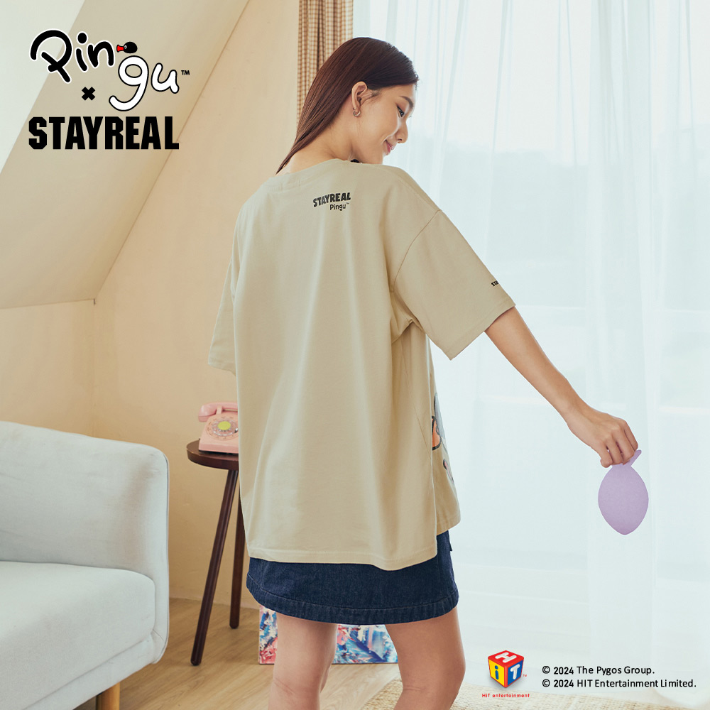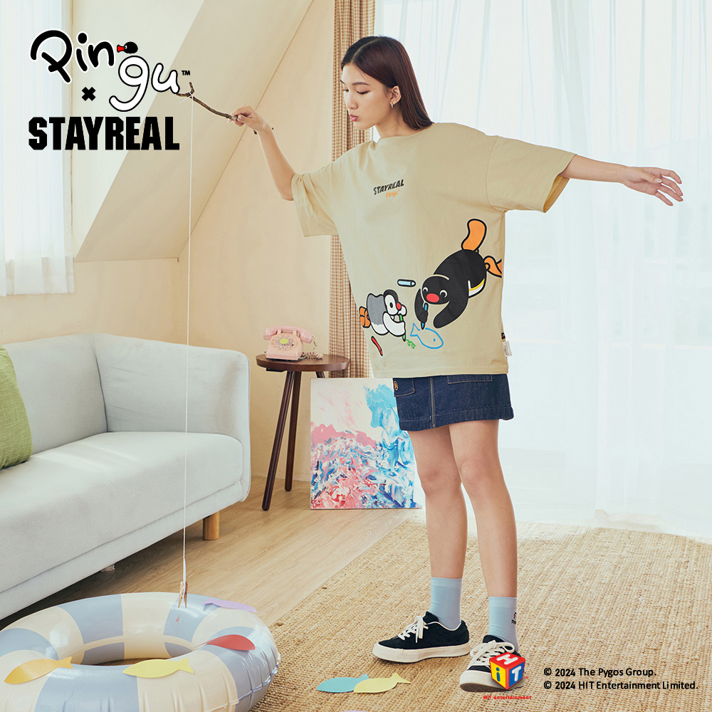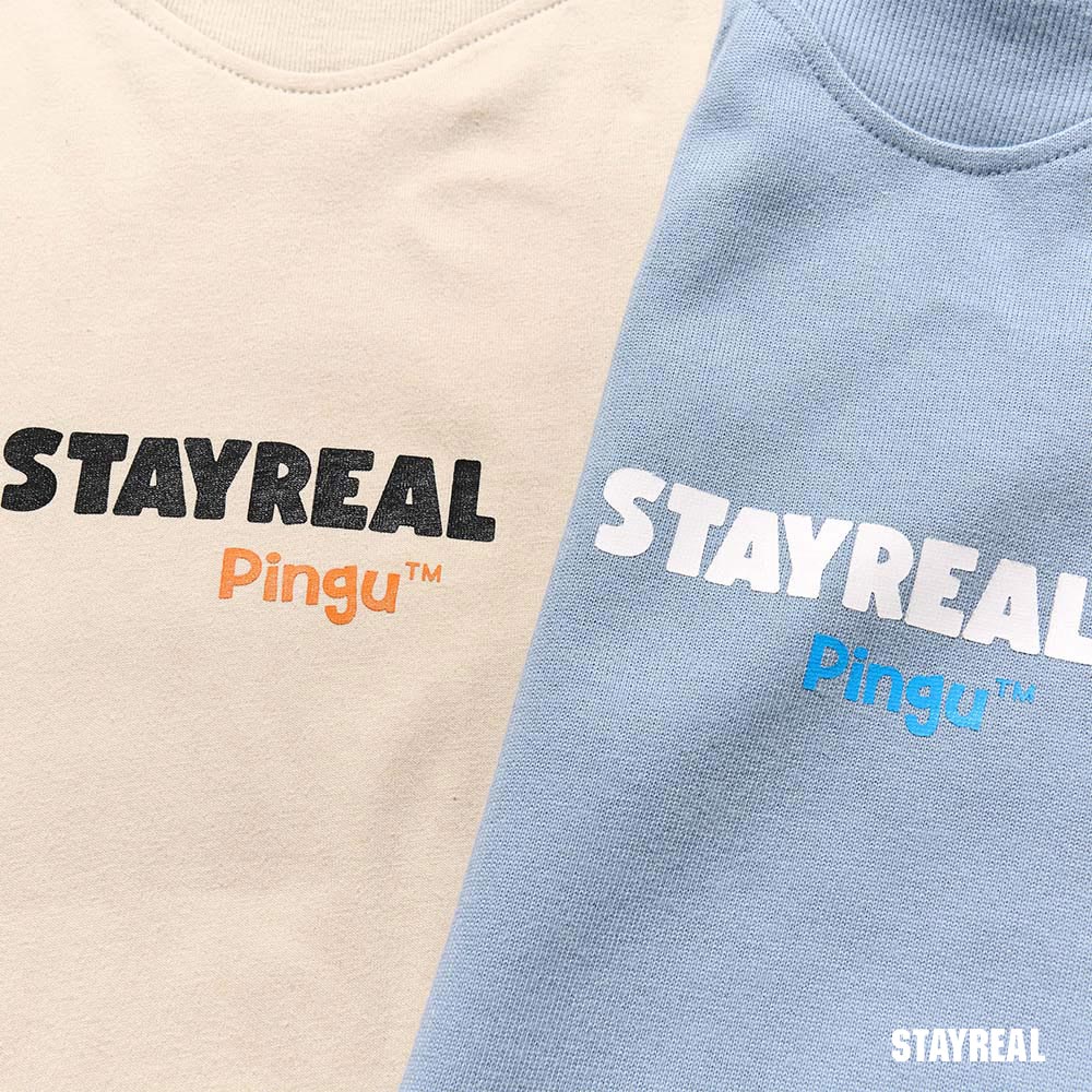 STAYREAL x 企鵝家族 Pingu 哥哥妹妹塗鴉寬版T - 灰藍