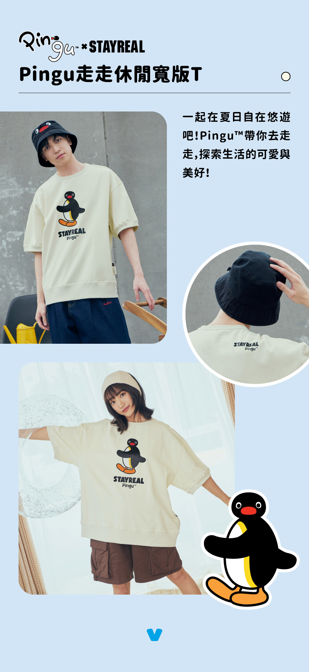 STAYREAL x 企鵝家族 Pingu 走走休閒寬版T